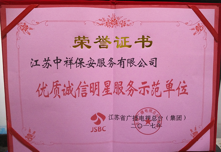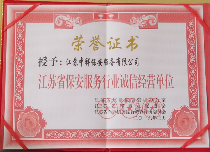江蘇中祥保安服務有限公司是經江蘇省公安局廳,市公安局批準的具有合法資質的保安服務公司,屬上海智成旗下子公司,我司從2003年以來至今已有十幾年的管理經驗,多年來一直專業(yè)從事企業(yè)安全外包、大型活動現(xiàn)場保衛(wèi)、長短期保鏢、緊急危機處理、技術防范等全面安全事務管理服務,保潔服務,物業(yè)管理服務,取得了驕人的業(yè)績,并受到客戶的高度贊揚。